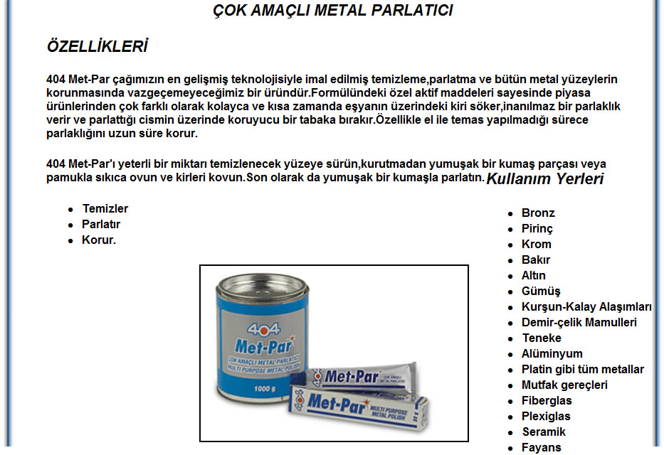 >> 404 ÜRÜN ÇEŞİTLERİ
